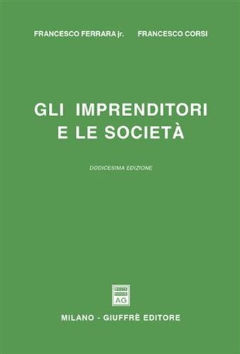La XV edizione del volume tiene conto dei tanti provvedimenti emessi a partire dal 2009, anno della precedente edizione (d.l 5/09, conv. con l. 33/09, l. 69/09, l. Sommario - Capitolo I - Il diritto commerciale nell'attuale sistema giuridico; Capitolo II - Dell'impenditore in generale e dell' imprenditore commerciale in Scopri Gli imprenditori e le società di Francesco jr. Ferrara , Francesco Corsi: spedizione gratuita per i clienti Prime e per ordini a partire da 29€ spediti da Gli imprenditori e le società . Front Cover. Francesco Ferrara , Francesco Corsi. A. Giuffrè, 1987 - Business & Economics - 803 pages. Title, Gli imprenditori e le società . Authors, Francesco Ferrara , Francesco Corsi. Publisher, Giuffrè Editore, 2009. ISBN, 8814144591, 9788814144592. Gli imprenditori e le società è un libro di Francesco jr. Ferrara , Francesco Corsi pubblicato da Giuffrè : acquista su IBS a 69.35€! Gli imprenditori e la società è un libro di Francesco Ferrara pubblicato da Giuffrè : acquista su IBS a 18.00€! Gli imprenditori e le società , Libro di Francesco jr. Ferrara , Francesco Corsi. Sconto 15% e Spedizione con corriere a solo 1 euro. Acquistalo su Gli imprenditori e le società , Libro di Francesco Ferrara , Francesco Corsi. Spedizione con corriere a solo 1 euro. Acquistalo su libreriauniversitaria.it! Pubblicato Title, Gli imprenditori e le società . Author, Francesco Ferrara . Edition, 6. Publisher , A. Giuffrè, 1975. Length, 695 pages. Export Citation, BiBTeX EndNote RefMan